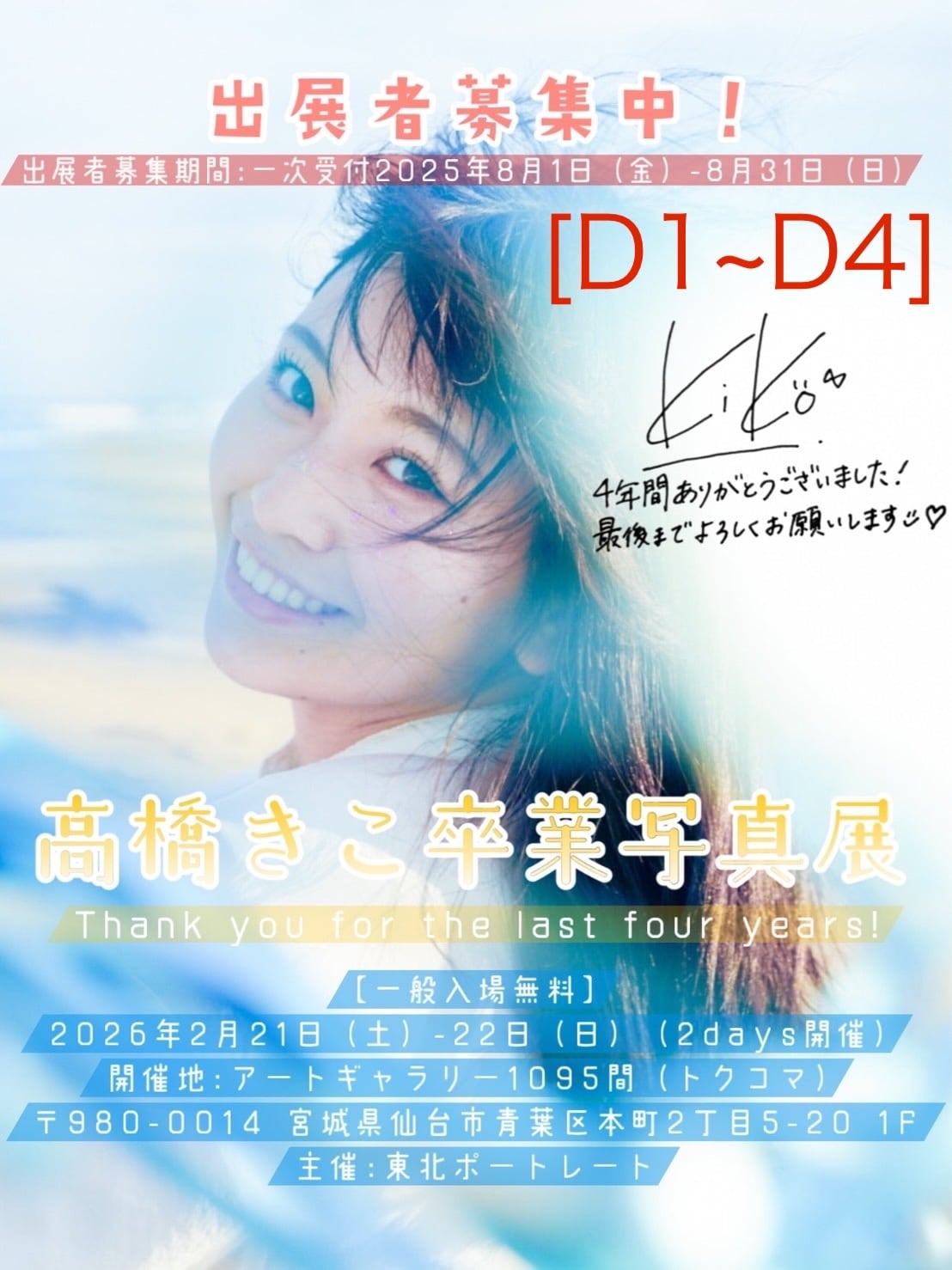 【展示スペース:D1~D4】2月21日(土)2月22日(日)『高橋きこ卒業写真展_展示申し込み』